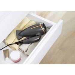 Díky sklopné rukojeti je tento malý cestovní fén ještě praktičnější a lze jej snadno uložit do zavazadla, při cca cca 430 g je navíc mimořádně lehký