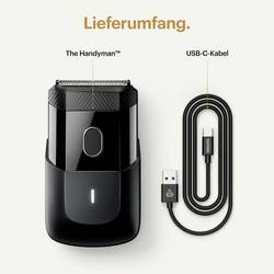Oholíte se spolu s mobilním telefonem: Přidržte The Hanmman™ a oba nůžkové elementy tak, aby se na pokožce ležely naplocho. Ve fóliovém strojku je stále pohyblivý. U každého tahu čistí prvek dlouhých vlasů tak, že dlouhodobé zastavení zaholí, zatímco fóliový prvek důkladně a blízko pokožky.