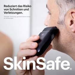 - Technologie SkinSafe™: Náš kompaktní holící strojek pro muže je vybaven holící hlavou Dual Action SkinSafe™, která obsahuje lanové zastřihovací zařízení a fóliové nůžky.