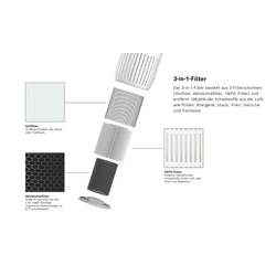 - 3v1 filtr, 3 vrstvy (předfiltr, filtr s aktivním uhlím, filtr HEPA)