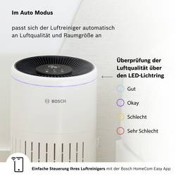Vysavač Air 4000i značky Bosch zajišťuje efektivní a komfortní čistý vzduch v místnostech až 62,5 m². S výkonem 300 m3/h (CADR) odfiltruje znečišťující látky spolehlivě z ovzduší v místnosti díky vícevrstvému systému z předfiltru, filtru s aktivním uhlím a vrstvě HEPA. Zařízení s App můžete snadno Bosch HomeCom Easy ovládat pomocí praktických funkcí, jako je zapínání a vypínání, změna režimu (auto, manuální, klidu) a nastavení časovače.