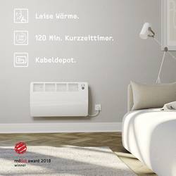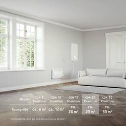 S pomocí integrovaného regulátoru můžete přesně ovládat teplotu během týdne – plánování na 7 dní, 5 dní, víkend nebo spontánně po stisknutí tlačítka na 10 až 120 minut. Pokud se větrá, nástěnný konvektor se automaticky vypne.