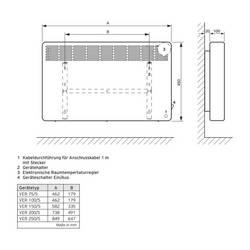 Výhody elektrických OHŘÍVAČŮ pro vytápění vnitřních prostorů VER 150/5, plochý univerzální nástěnný konvektor pro nepřetržité vyzařování tepla, vytápění koupelen, garáží nebo sklepů, a to i v obytných prostorech, energeticky úsporný tepelný komfort díky elektronické regulaci s časovým programem (denní/týdenní program), funkce ochrany proti mrazu, plynule nastavitelná teplota od 5 °C do 30 °C, tepelná izolace proti stříkající vodě (IP 24) připojení pomocí přiloženého kabelu s ochranným kontaktem, ochrana proti přehřátí, zapnutí/vypnutí, barva: bílý jmenovitý výkon síťového napětí 1,50 kW, napětí 230 v/50 Hz, výška/šířka/hloubka 450/582/100 mm, hmotnost 6,0 kg