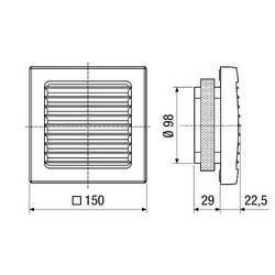 Vnitřní mřížka pro odvětrání. Se vzduchovým filtrem. Se zakrytými otvory pro šrouby. Odnímatelný kryt pro čištění bez použití nářadí. Těsnicí páska je součástí dodávky. Příslušenství: Náhradní vzduchový filtr ZRF.Článek: ESG 10/2, směr vzduchu: Odvzdušnění, montáž: Vnitřní, umístění: Stěna, způsob montáže: Na omítku, materiál: Plast, barva: dopravní bílá, podobně RAL 9016, hmotnost: 0,12 kg, hmotnost s obalem: 0,13 kg, třída filtru: ISO Coarse 30 % (G2), vhodné pro jmenovitý průměr: 100 mm, šířka: 150 mm, výška: 150 mm, hloubka: 51,5 mm, šířka s obalem: 151 mm, výška: 151 mm, hloubka s obalem: 60 mm, okolní teplota: 60 °C