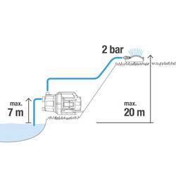 Vysoká sací výška (7 m) a výška čerpání (4,1 bar) pro použití u podzemních vod, vod k dešti, bazénu