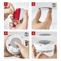 Sada magnetického upevnění se skládá ze dvou samolepicích komponent: Z prvků stropů, které se připevňují na strop pokoje, a z prvků paticového systému se třemi magnety, které se připevňují na montážní desku hlásiče.