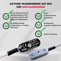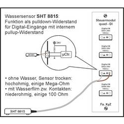 Senzor se dvěma V4A-kovové kontakty, zalitý v plastovém krytu. Jakmile voda nebo jiné vodivé kapaliny oba kontakty, zmenšuje odpor mezi oběma žíly některých Mega-Ohm na několik 100 ohmů. Díky tomu můžete digitálních vstupů od řízení s interním pull up rezistorem angetriggert. Senzor lze snadno prodloužit kabely, průřez: 2 x 0,14 čtverec milimetrově.
