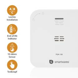 Smartwares FGA-13800, FGA-13800 detektor oxidu uhelnatého Ovládání přes aplikaci na baterii, detekce oxidu uhelnatého (CO)