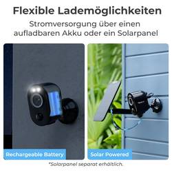 Tato inteligentní kamera 5 MP značky Reolink je vybavena dobíjecím akumulátorem*, který nabízí dlouhodobý výkon bez nepohodlné kabeláže. Funguje bezchybně i při výpadku proudu. Baterie může být nabíjena solárním panelem Reolink**, aniž by bylo nutné je vyměnit nebo nabíjet.