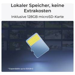 - Místní ukládání: Integrovaná microSD karta 128 GB, GB lze rozšířit na 2x 512 GB, GB nevyžaduje dodatečné náklady nebo cloudové služby