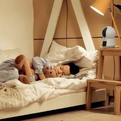 Při rozpoznání neobvyklých zvuků aktivuje kamera funkci automatické hlídkování pro kompletní záznam. Hlavní objektiv je otočný a sklopný, zatímco pevný objektiv monitoruje důležité oblasti a zajišťuje tak nepřetržité monitorování v reálném čase.