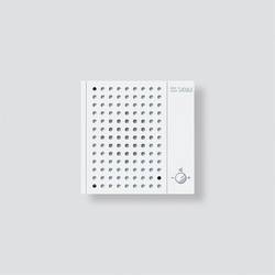 Sběrnicový vysílač/vysílač pro zařízení na omítku s reproduktorem, z vnějšku nastavitelná regulace hlasitosti a elektronický generátor vyzvánění, programovatelný paralelně se sběrnicovým vnitřním zařízením.