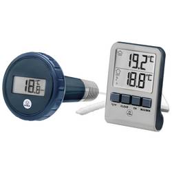Ideální pro sledování teploty v bazénu, zahradním jezírku nebo v akváriu. Plovoucí vysílač měří teplotu vody. Na přijímači se zobrazuje i teplota vzduchu, přesný čas, nastavené mezní hodnoty teploty vody, které spouštějí optický a akustický alarm, minimální a maximální hodnoty a trend nárůstu nebo poklesu teploty vody.