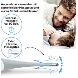 Teploměr má krátkou dobu měření cca 10. Sekundy. Po ukončení měření vydává zvukový signál - pro snadné, přesné měření.