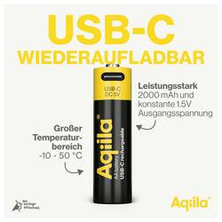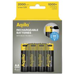 Aqiila AA USB-C® akumulátor, Li-Ion, 2000 mAh, 1.5 V, 4 ks