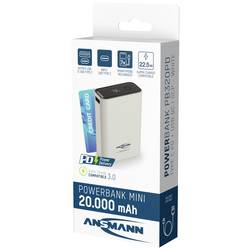Ansmann 20000 mAh PB222PD w powerbanka 20 Ah Power Delivery 3.0, Quick Charge 2.0 Li-Pol bílá S regulátorem nabíjení, Možnost současného nabíjení a vybíjení,