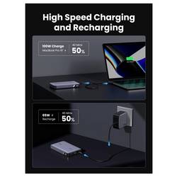 Bleskový nabíjecí výkon 100 W: S nabíječkou Power Delivery 3.0 dosahuje USB-C1 rychlonabíjecího výkonu 100 W, takže můžete svůj počítač nabít kdykoliv a kdekoliv. PowerBank UGREEN 100W může 2022 MacBook pro 16" nabíjet 50% během 40 minut.