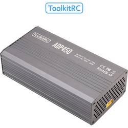 Síťový zdroj ToolkiitRC ADP450 poskytuje solidní výkon 450 W při výstupním napětí 24 v a proudu 19 A. je vybaven aktivní technologií pro korekci účiníku (PFC), která zvyšuje účinnost až na 94 %. Přístroj je určen pro napájení nabíječek a jiných zařízení s připojením XT60, zejména pro modely Toolkit RC modely jako M8D, M6D, M8P a M9. Síťový zdroj je vybaven ochranou proti zkratu, nadproudu, přehřátí, přetížení a přepětí.
