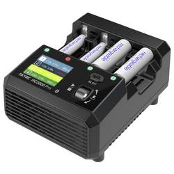 Čtyři nezávislé nabíjecí banky pro baterie AA/AAA: Jednotlivě vybíjetelné a vybité s nabíjecím proudem 0,2 – 3 a nebo vybíjecím proudem 0,2 – 2,5 A.
