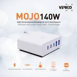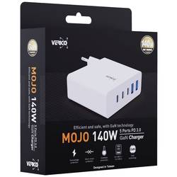 Verico Mojo 140W GaN 5 USB nabíječka, 2x USB A, 3x USB-C®, 140 W, Power Delivery 3.0, bílá