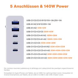 - Technologie GAN (gallium nitrid) PD 3.0, QC 3.0; 3x USB-C®, 2x USB-a, 140 W nabíječka