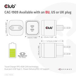 club3D CAC-1909EU napájecí adaptér k notebooku, 2x USB-C®, 45 W, Dodávka energie, černá