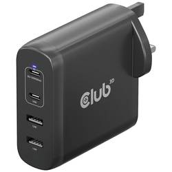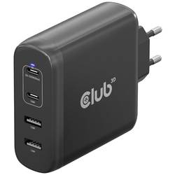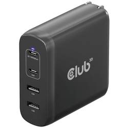 club3D CAC-1912 napájecí adaptér k notebooku, GaN, USB Power Delivery (USB-PD) , 2x USB A, 2x USB-C®, 100 W, Dodávka energie, černá