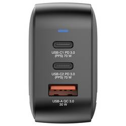 • Nástěnná nabíječka 70 W Mini GAN se 3 výstupními přípojkami: 2x USB-C® PD 70W a 1x USB-a QC 3.0