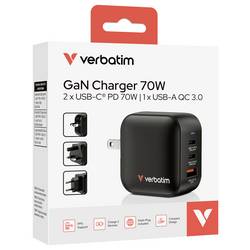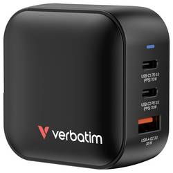 Verbatim Mini GaN Charger cestovní nabíječka, Rychlonabíječka, GaN, s adaptérem pro Evropu, s britským adaptérem, s americkým adaptérem, 1x USB A , 2x USB-C®,