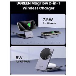 UGREEN UGREEN W528 Magnetic Charger 2-in-1 bezdrátová nabíječka pro smartphony/tablety, šedá