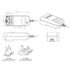 Egston 003920490 zásuvkový napájecí adaptér, stálé napětí, s adaptérem pro Evropu, s britským adaptérem, 12 V/DC, 2 A, 24 W