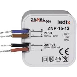 Síťový zdroj ZNP-15-12 je profesionální síťový zdroj impulzů s regulací napětí od 12 V DC a jmenovitý výkon od 15 W pro montáž do instalační krabice pod omítku. Napájecí zdroj je pro použití s výrobky z Ledix-Serie a s standardní LED prvky. Síťový zdroj má ochrana proti zkratu a přepětí. Velmi malá spotřeba v pohotovostním režimu.
