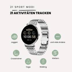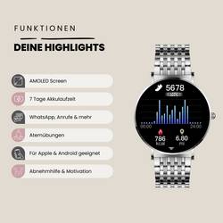 SIONA 2 Elegance Silver - ženy Smartwatch v moderním stříbrném provedení, pásek z nerezové oceli Milanaise s tenkou webovou strukturou, 7 dní akumulátor, krevní tlak, pulz, vodotěsný, AMOLED displej