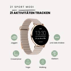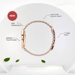 SIONA 2 Wave SAND - ženy Smartwatch - náramek ze svarové kůže, magnetický uzávěr, 7 dní akumulátor, krevní tlak, pulz, vodotěsný, AMOLED displej