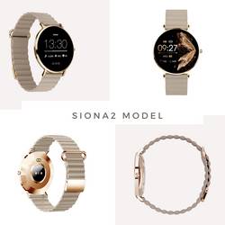 Objevte nový rozměr elegance! S výškou krytu pouze 6,9 mm je SIONA 2 tak tenká a lehká, že se na váš zápěstí přesně přizpůsobuje. Tyto mimořádně tenké chytré hodinky spojují nadčasový design s největším komfortem nošení.