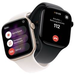 (2) vyžaduje se datový tarif. 5G je k dispozici ve vybraných zemích a prostřednictvím vybraných poskytovatelů. Rychlost se může lišit v závislosti na umístění a poskytovateli. Další informace o podpoře 5G jsou k dispozici u mobilních operátorů a na apple.com/de/watch/cellular.
