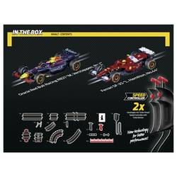 Sada Carrera GO!!! Na sebe sady Speed Zone ze dvou největších klonů motoristického sportu: Max. Takty v Oracle Red Bull Racing RB21 „M. Verstappen, No.1" a Lewis Hamilton ve Ferrari SF-25 „L. „L. Hamilton, No. 44“ Na velkolepé 6,3 m dlouhé trati ukáží závodníci svoji sílu – díky vysokorychlostním rovinkám, ostrým zatáčkám a loopingu se závodní dráha postará o bezžilovou akci. Action je totiž vhodná pro jízdu na dráhu. Detailně propracovaná vozidla a pestré tratě dohánějí vzrušující atmosféru Formule 1 přímo do svého domova. Nyní se říká, že máme plyn a dokažte, kdo je na trase nejrychlejší.