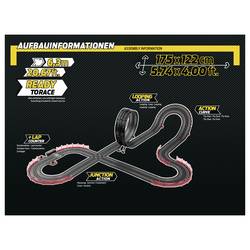 Transformato r, přípojná lišta, 2 ruční regulátory, počítadlo kol, rovné zatáčky, křižovatka, nadjezdy, looping, Legp lanken, podpěry