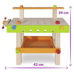 Pracovní stůl Eichhorn: Tady mohou správně začít malé řemeslníky. V 49-dílné Pracovní stůl Eichhorn najde své místo: Pila, kladivo na šroubovém klíči a mnoho dalšího příslušenství, jako jsou šrouby, matice a spojovací prvky. V dolní odkládací přihrádce jsou drobné díly dobře uloženy. Pracovní stůl má výšku cca 39 cm a je vhodný pro děti od 3 let.