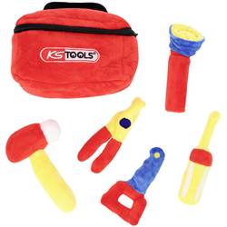 Pouzdro na nářadí KS z mikroplyši dokáže reprodukovat rodiče s touto sadou nástrojů. Praktická brašna s držadlem obsahuje kladivo, šroubovák, klíč na šrouby, pilu a kleště.