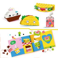 Děti používají fascinující sortiment barevných stavebních kamenů a speciálních dílů, jako jsou oči, ústí a různé ozdobné prvky, pro vytvoření 4 milovníků: Muffinů, muffinů, cupcake, LED na stopce, avocado a Taco! Děti mohou tyto modely ale také nově skládat z muffinu, Bubble TEA, Birne a Panini. A pokud je dítě ještě smutnější, může následovat intuitivní návod a změnit obličej, tvary a barvy. Nebo se s dítětem posekne zelený LED, saftový karton, kus vodní melony, kaštanová pečeť a obrovská sendvičnová víčka.