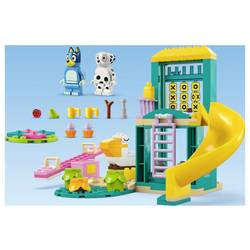 Tato univerzální herní sada obsahuje kromě barevného hřiště také oblíbené podpal Bluey a Chloe. Oba minifigury mohou hrát na houpači, skluze, loutku, lezectví a otočitelném Peltierovi. Také mezi 3 rostlinami je možné odskakování psů a koček. Na přívěži je dalekohled a v oblasti piklování existují nápoje a cupacky. Každý samostatný sáček v boxu obsahuje 1 konstruovatelný model, velký základní prvek a jednoduchý návod k sestavení, aby malé stavební meři rychle dosáhli úspěchu. Pestrá rukojeť pro intuitivní sestavení.