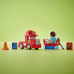 LEGO DUPLO Disney Mack při závodech (10417) je model pro stavbu a hraní na malé děti, který je založen na filmové řadě auta od Disney a Pixar. Hračky do vozidel pro 2leté zahrnují stavební červený odtahový vůz.