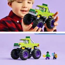 Sada obsahuje dvě LEGO Marvel Minipostavy: Hulk s odnímatelnou přilbou a thanos, které jsou vybaveny paktem pro mossert a rukavicemi Infinity. Velký, stavební monster Truck je nejen nalakován zeleně, ale má také nápis „Hulk Smash!“ Také Hulks obličej na karoserii. Velká otočná kola a funkční tlumiče zajistí ještě lepší zábavu při jízdě a Action superhrdin.