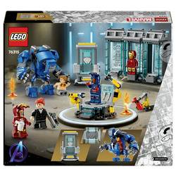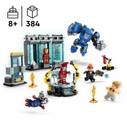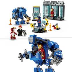 Sada LEGO LEGO Marvel obsahuje 3 vyzbrojovacích kabin a 3 minifigurek v Iron Man MK1, MK43 a MK6. Okupace je završena dvěma minifigurami Pepper Potts a zhoubným Aldrriem Killian. Také sestavitelný robot Dum-E a veliký robot Igor Iron Man MK3 s pohyblivými rameny a nohama a také s místem pro miniaturní figurku.
