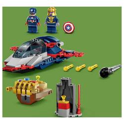 Stavební a hrací sada obsahuje 2 minifigury: Thanos na svém kosmickém plavidle, které vypadá jako rukavice Infinity a má „prst“ a raketomet, a Captain America na svém Quinjet se 2 Shootery, výklopnou pilotní kabinou a skrytým prostorem pro jeho štítek. V samostatném modelu se nachází kosmický kámen pro fantazické hry na roli. Captain America chce zabránit tomu, aby Thanos stál vzácný kámen. Každý sáček v boxu obsahuje startovací prvek a vhodné kameny pro rychlou stavbu modelu a typu, aby hraní mohlo začít ihned. Intuitivní návod k sestavení v barevné rukojeť. Sada se skládá z 107 dílů.