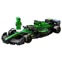 Automobil Aston Martin má pilotní kabinu, kterou lze otevřít naklopením ramínka, zadním spoilerem, ramenním závěsem, sponzornými nálepkami a širší zadní pneumatikou s nápisem „Pirelli“. Stavebnice obsahuje také mini figurka závodního řidiče v závodním závodním vozu Aston Martin Aramco a přilbu, kterou lze připevnit na závod v kokpitu.