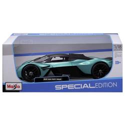 1155 PS silný Aston Martin Valkyrie přináší závodní výkon. Nadzemní výkon valkyrie zajišťuje jeho 6,5-litrový V12 motor. Společnost maisto napodobila originály a detailně propůjčila model s kovovým vstřikováním v měřítku 1:18 s věrnými detaily a pohyblivými dveřmi. Tento zelený sběratelský vůz je nutné pro každý fanog sportovního vozu a upoutá pozornost na vitrínu! Tento model je vhodný jako hračka pro děti od 3 let.