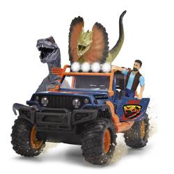 Dickie Toys - DINO Commander (40 cm) - auto na hračky „Jeepster Commander“ vč. Přívěsu s postavou plus 2 dinosauři - hračka pro děti od 3 let.