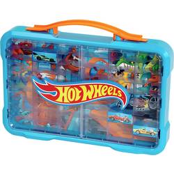 Odolná skříňka obsahuje přihrádky pro až 54 auta v měřítku 1:64 (vozidla nejsou součástí dodávky). Vitrína se stylovým postav na pozadí a zářivým logem Hot Wheels lze připevnit na stěnu pomocí běžných šroubů a hmoždinek (není součástí dodávky) nebo ji lze díky rukojeti snadno nosit všude s sebou.